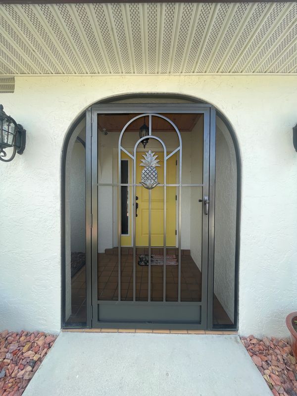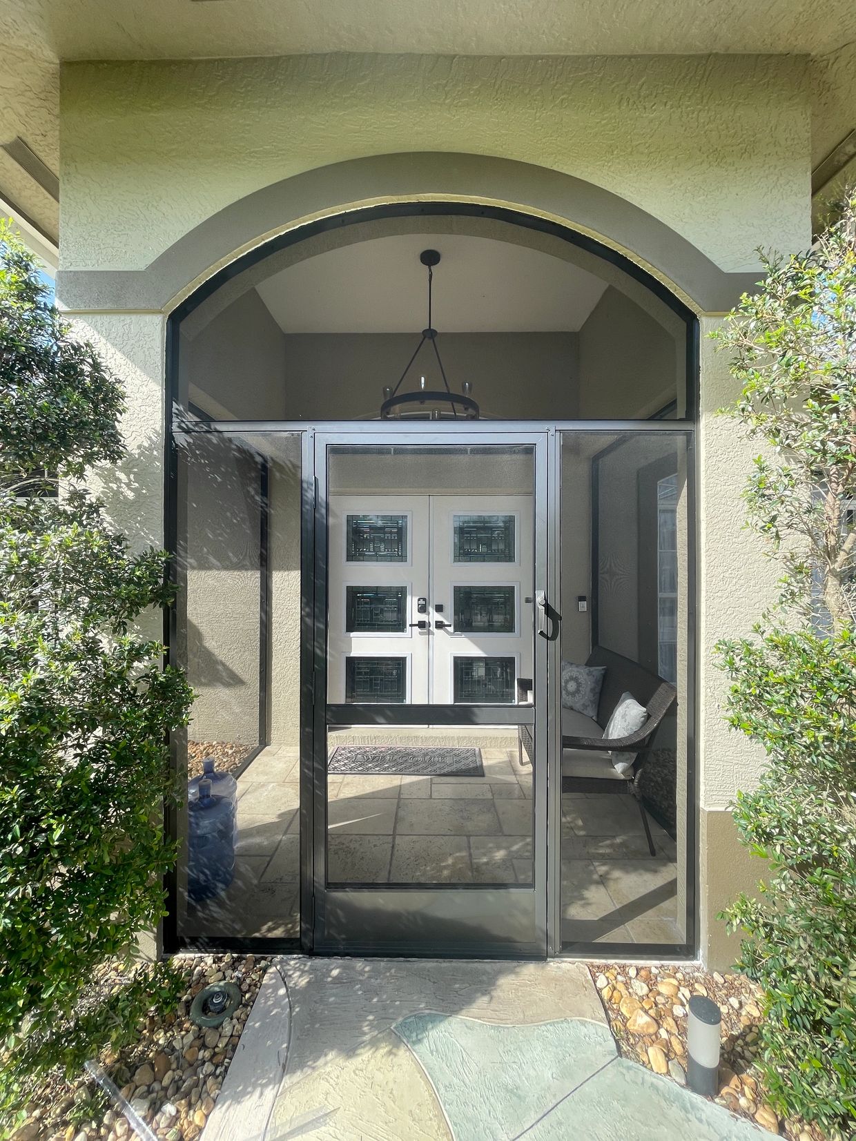 A front entryway enclosure is a screened-in structure built around the front door of a home. It’s typically made with aluminum framing and mesh screens, creating a breezy, bug-free space right at your entry.
